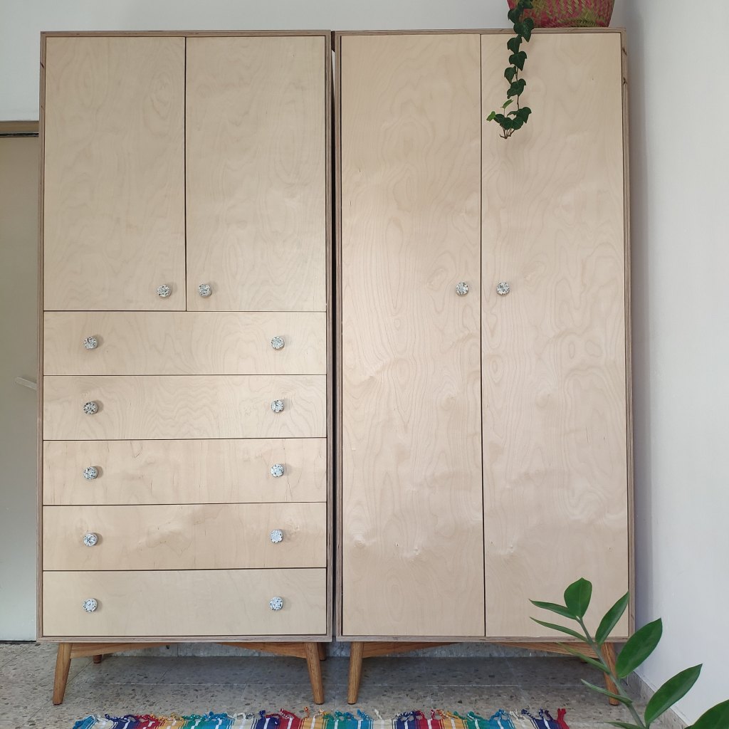 Birch ply and red oak twin closets.