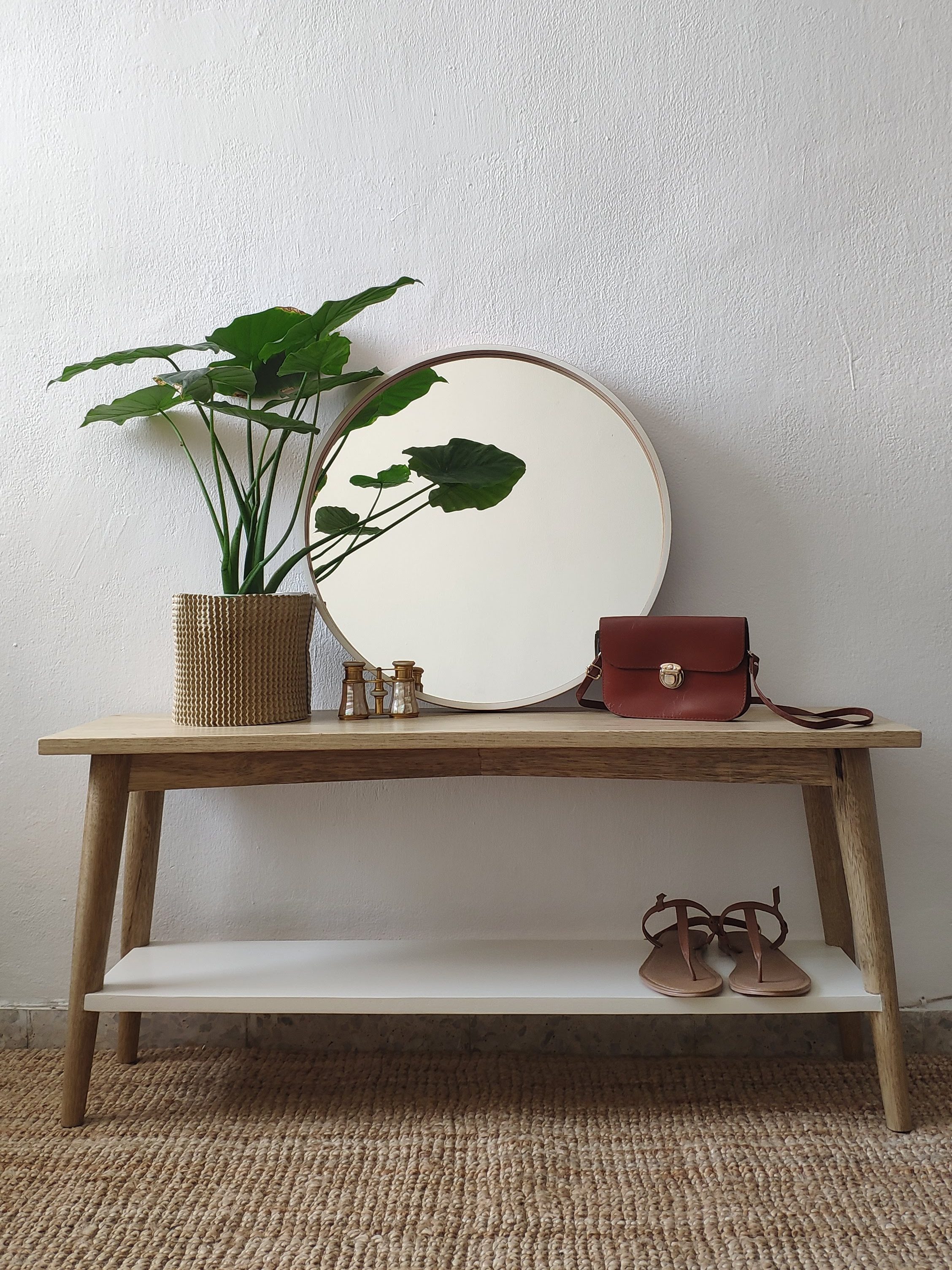 Splayed-leg limba bench.
