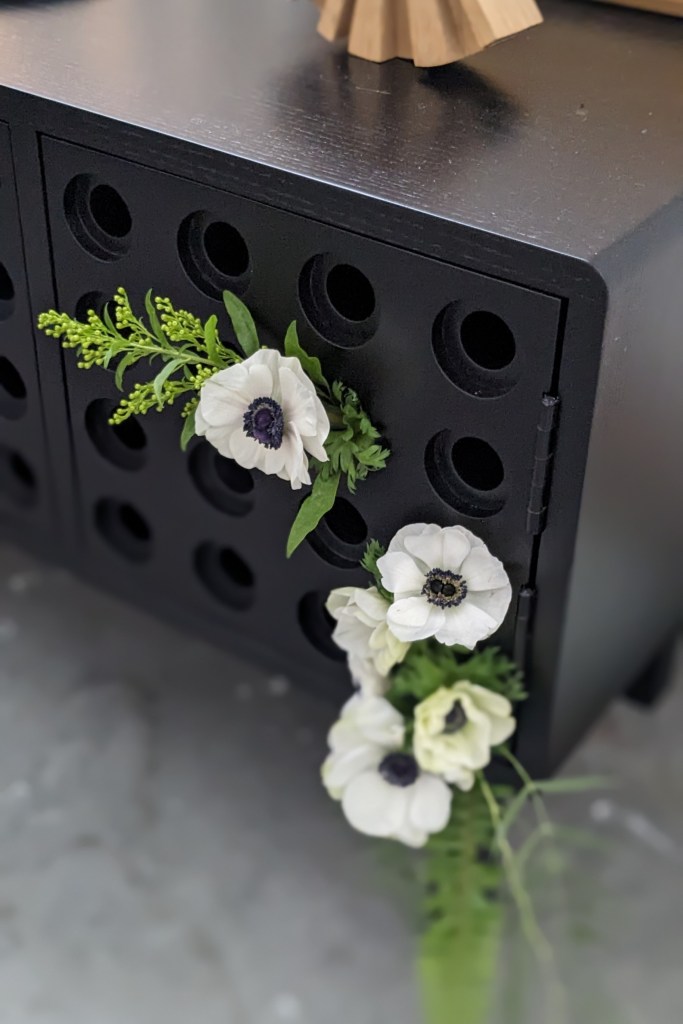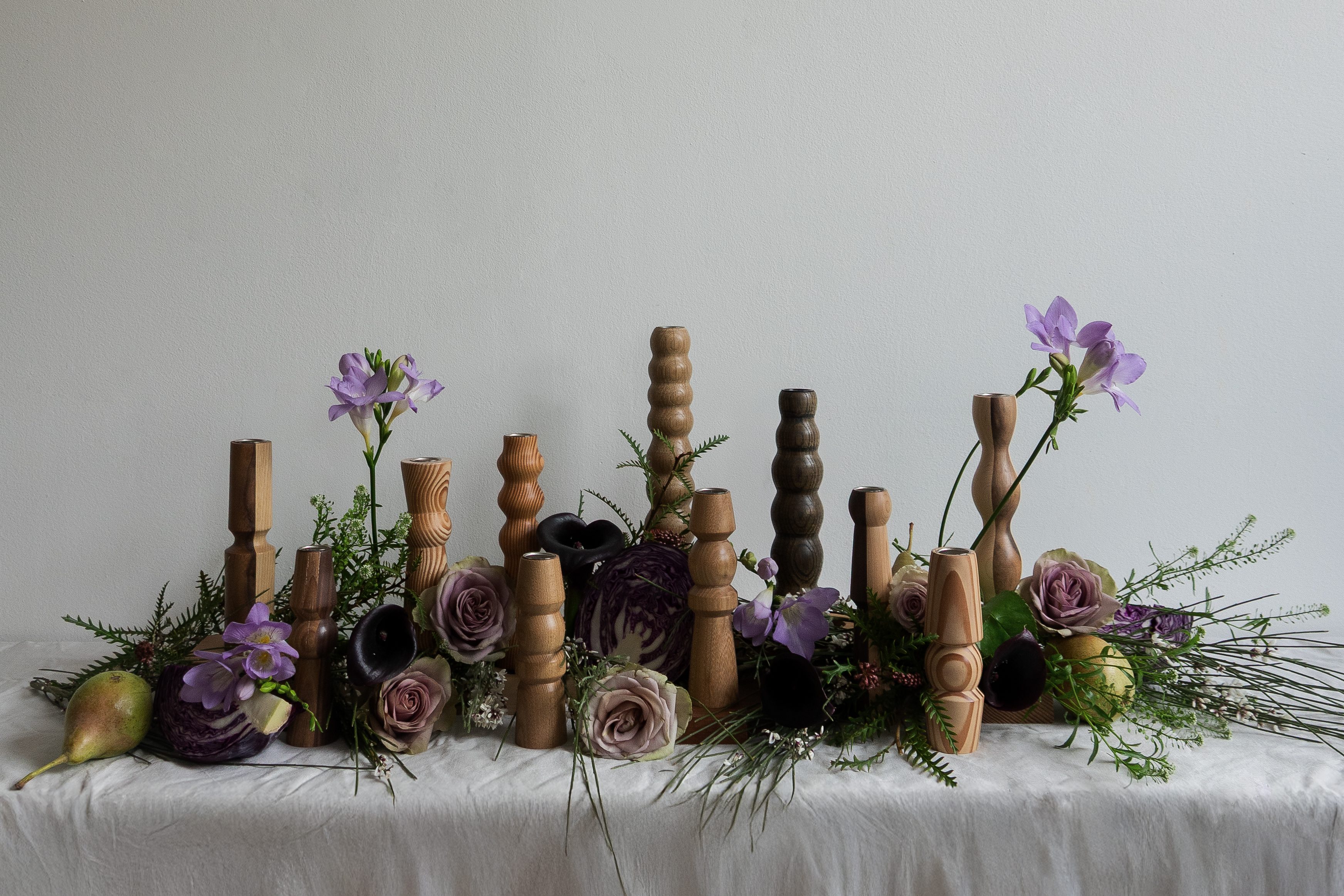 Wild, seasonal botanical installations created around my furniture by Marina Bonder, a floral artist and owner of the Misto Design Studio.